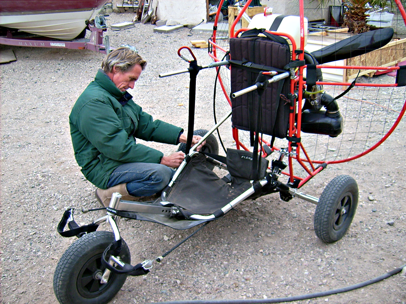 DISCLAIMER: Please read and be sure you thoroughly understand this disclaimer before flying a TrikeBuggy. Trike flying is an extremely demanding sport requiring exceptional levels of attention, judgment, maturity and self discipline. It is unlikely that you will be able to participate in it safely unless you make a conscious and continual commitment to your own safety. PPG and Hang Glider Trike flying is a dangerous sport and may result in injury and death even when practiced by a competent pilot using proper equipment. TrikeBuggies are not covered by product liability insurance, nor have they been designed, manufactured or tested to any federal or state government airworthiness standards or regulations. Do not fly them unless you are willing to assume personally all risks in the sport of Trike flying, and all responsibility for any property damage, injury, or death which may result from your use of this TrikeBuggy. Safe operation of the TrikeBuggy requires a pilot proficiency equivalent to that of a BFI (Basic Flight Instructor), as well as an equivalent level of knowledge and understanding of those wind and weather conditions which may compromise the pilot's safe control of the TrikeBuggy. In particular, be advised that gusty winds or turbulent conditions may interfere with even an expert pilot's ability to safely control the TrikeBuggy, and may cause it to crash. Never take anything for granted in Trike Flying. If you are in doubt about anything, stop and figure it out or contact TrikeBuggy. Also please read our Warning and Caution! |